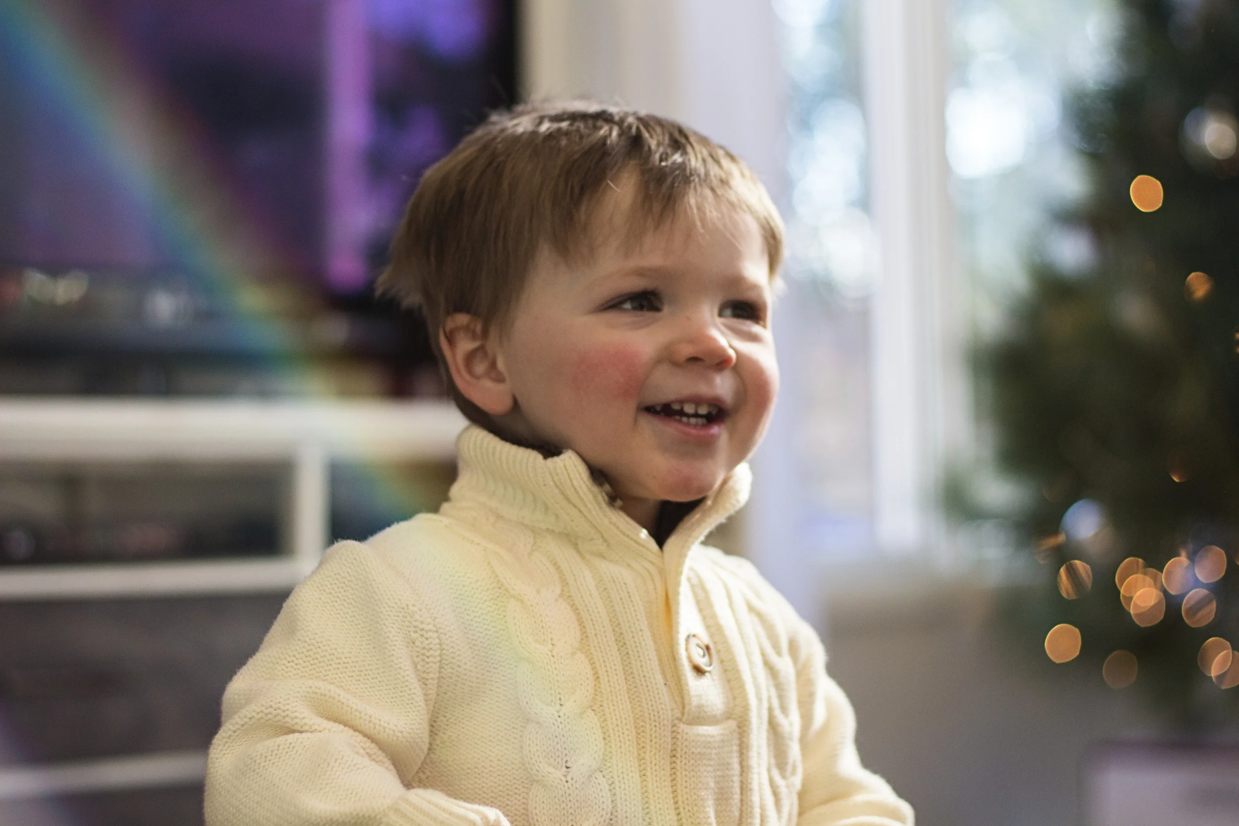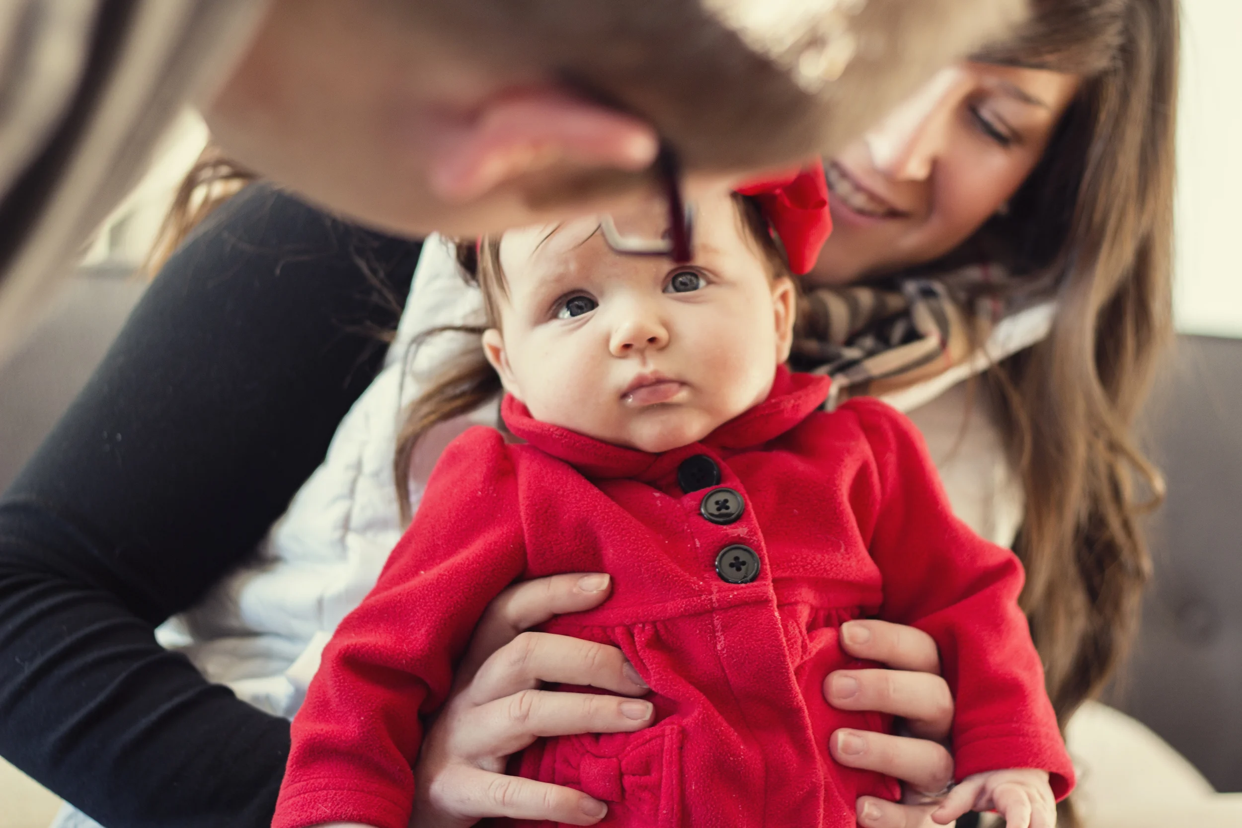 Henry led me upstairs to their family room which was the perfect place for a holiday mini session. Floor to ceiling windows with a huge stone fireplace and the perfect 70's modern decor. Jeff has put a lot of time into renovating their home, including refinishing some really cool vintage furniture pieces (some of which he picked up from the side of the road!). I was tempted to get some shots of the house just for my own decorating inspiration but I composed myself and started hanging out with Henry. He was ready to keep me busy by showing me all of his trucks and trains. Their newest addition, Amelia is all cheeks (is there any better way to be?) and was such a doll. I started snapping away and well, the rest is in the photos.
