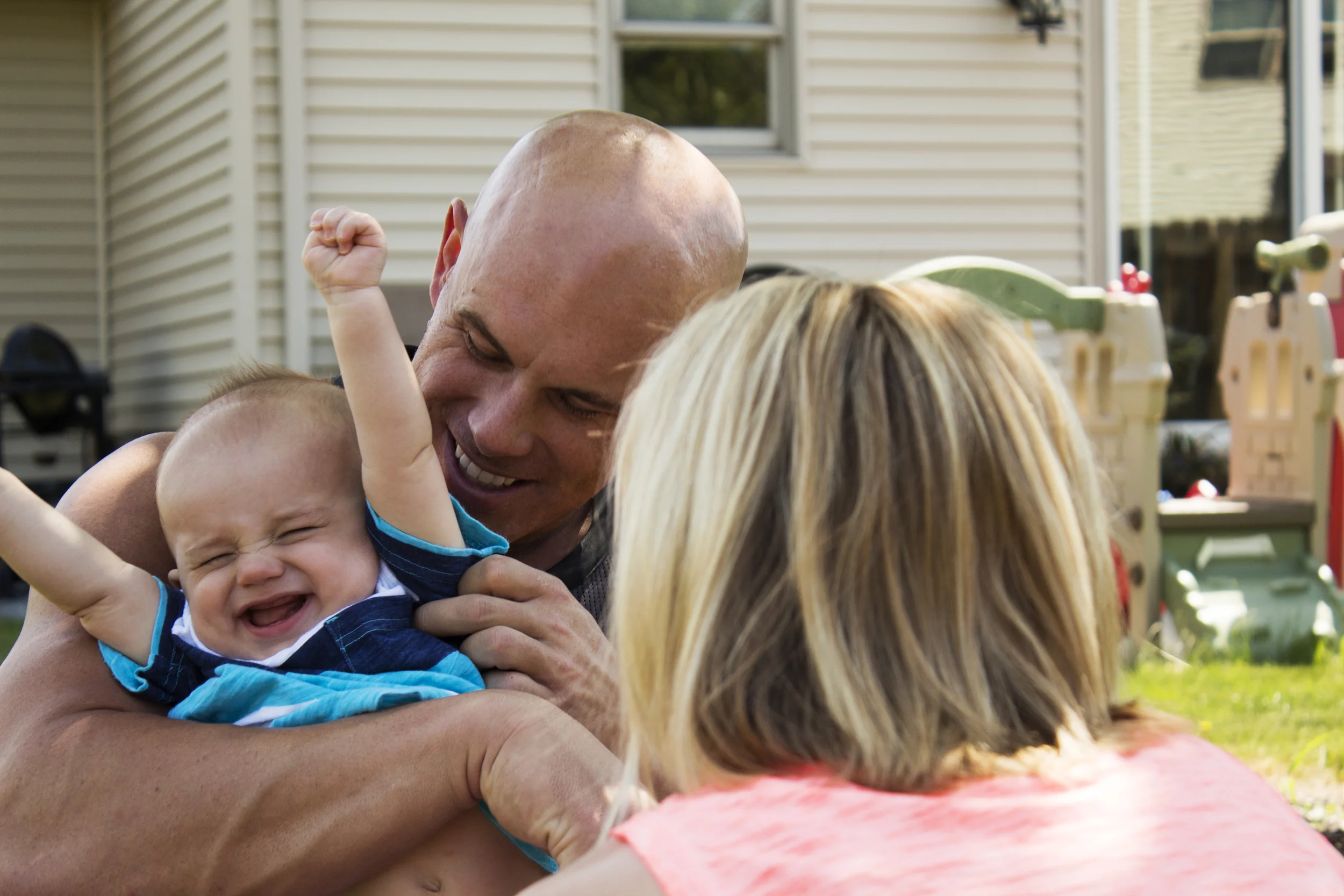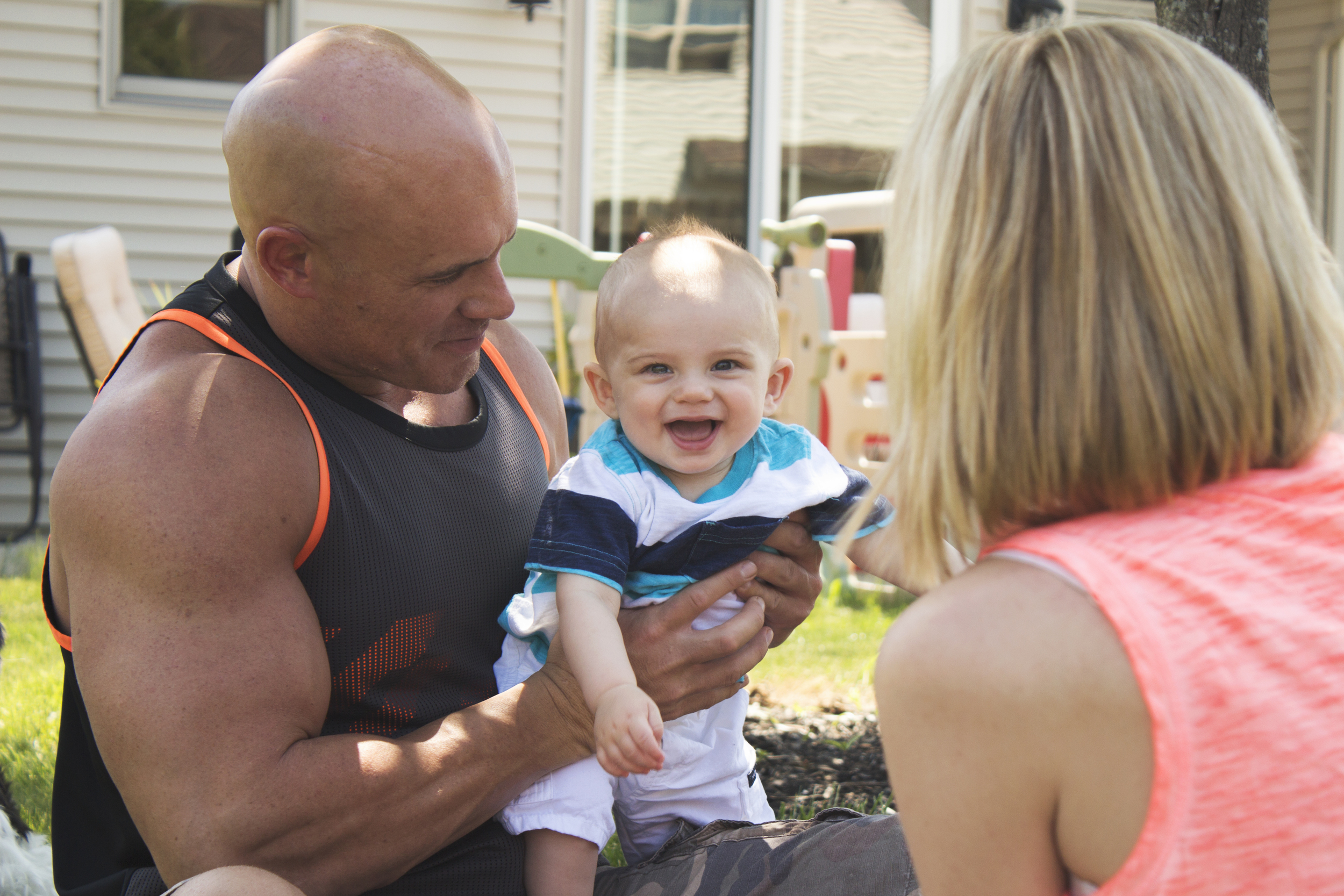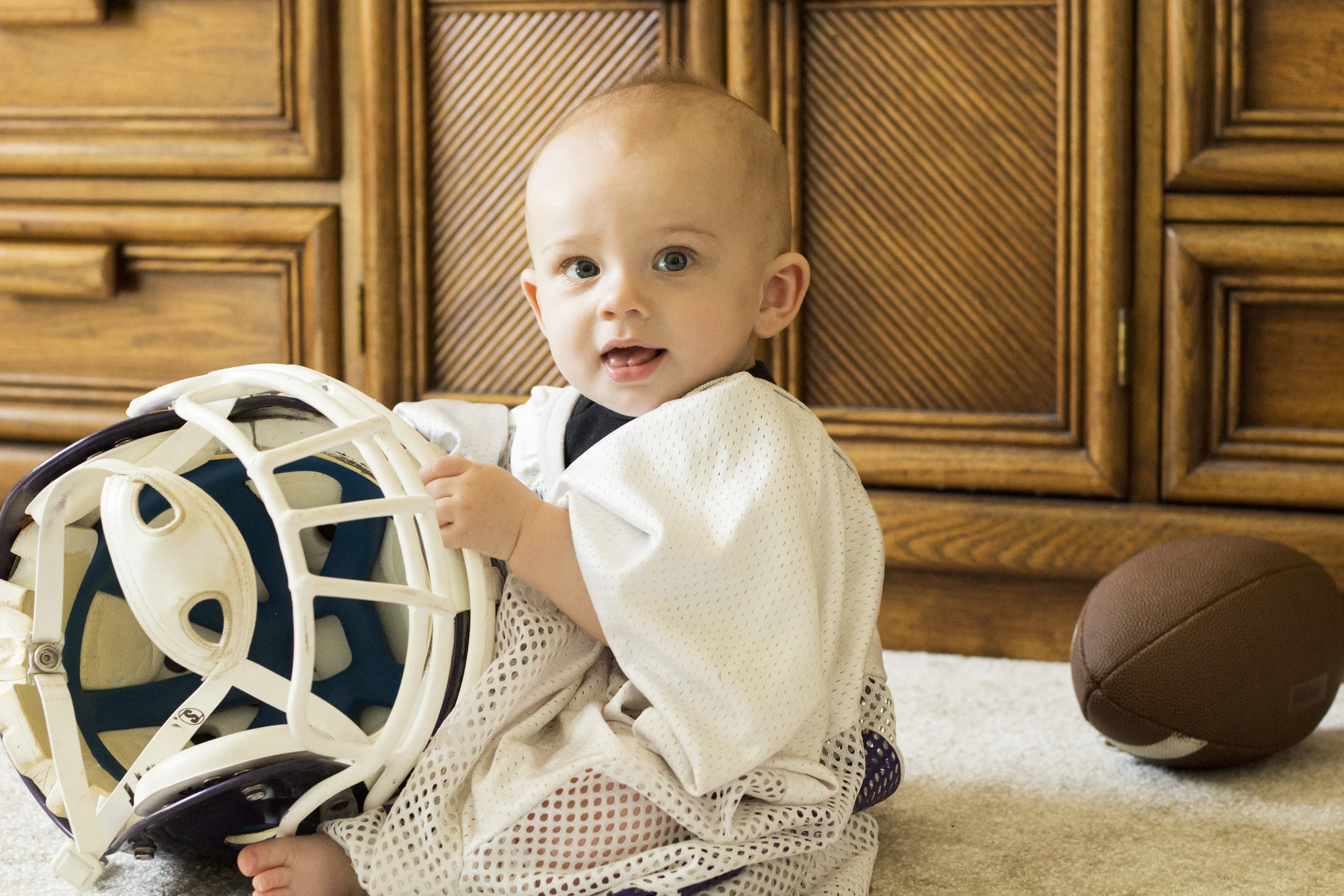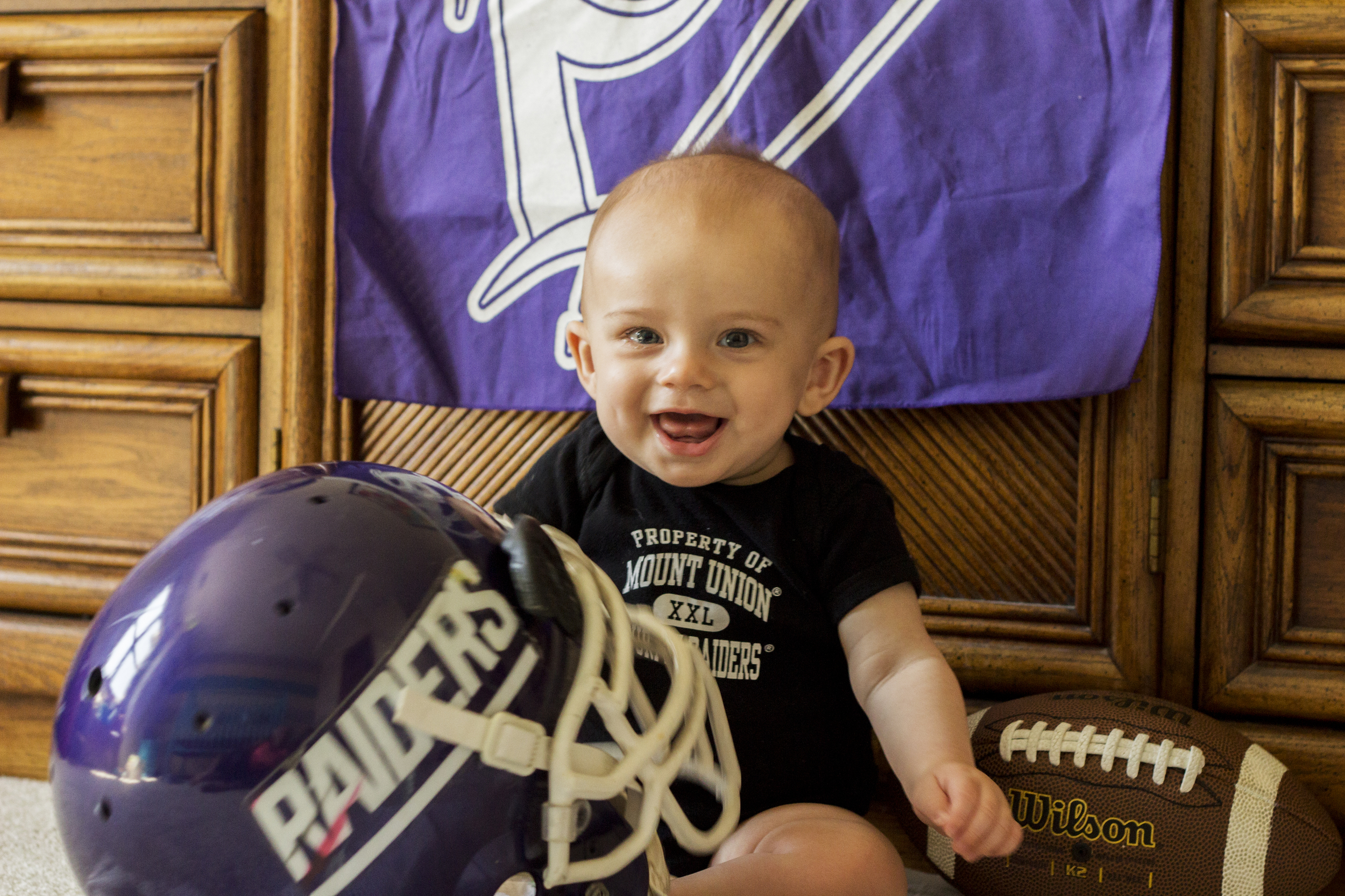 I know you see a lot of this face on my blog and it's partly because he is my adorable nephew Layne but it's also because he is seriously one good looking kid. He comes from great genes :). Layne is almost one now but I did take his 9 month photos a couple of months ago and we had the best time. It was almost Father's Day so we snuck in some session time to get these adorable pictures of Layne with his Daddy's Mount Union football gear. He is the. happiest. baby. ever. and I'm not just saying that. Seeing this family so in love is so good for my heart.